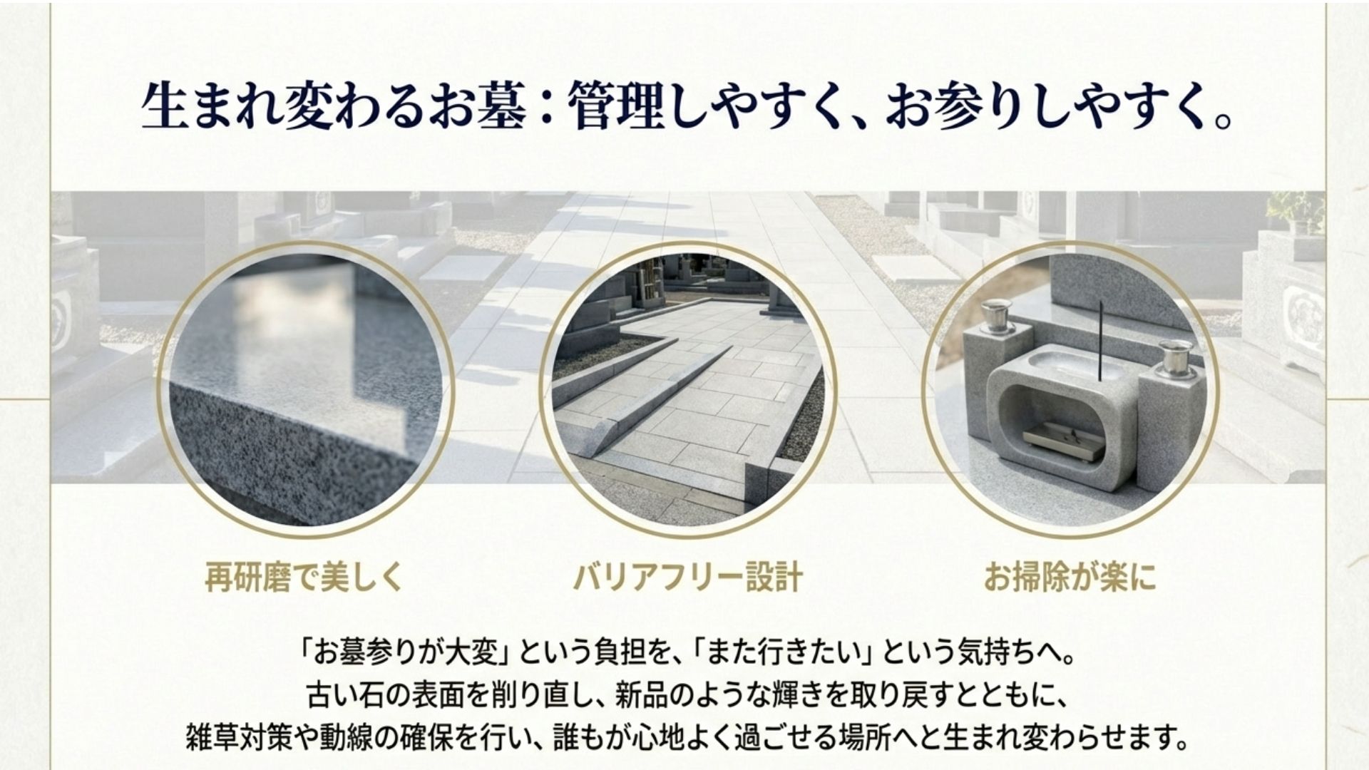 「お墓の掃除が年々、体にこたえるようになってきた」 「いつか子供にお墓を任せる時、今のままだと負担が大きい気がする……」
